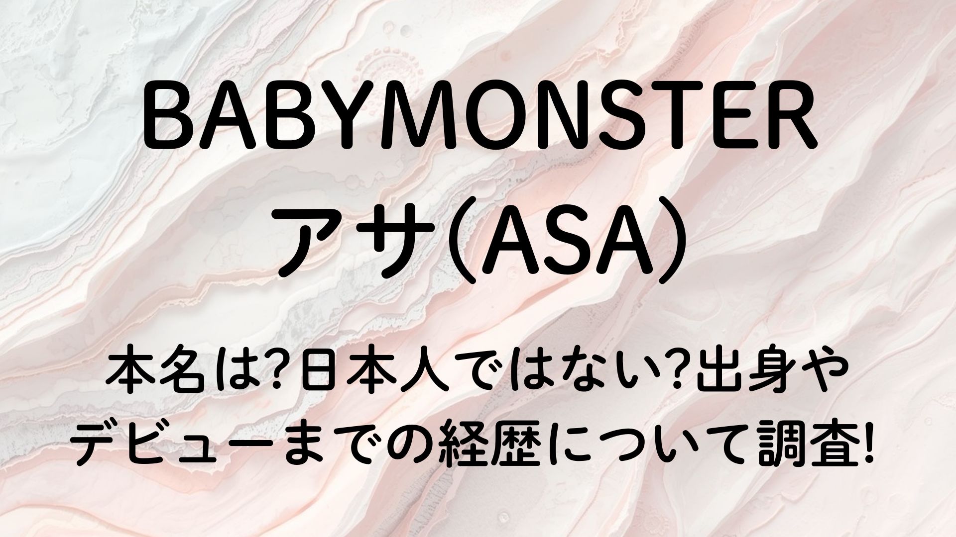 YGエンターテインメントから誕生した次世代ガールズグループBABYMONSTERで、圧倒的なラップとダンススキルを披露しているアサ(ASA)さん。「日本人のメンバーがいる」という噂から、その出身や国籍に注目が集まっています。本名や生い立ち、デビューまでの経歴について、詳しく調査してみました。